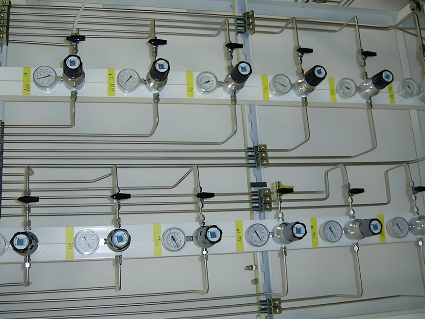 氣路指實驗室氣體工程,即從氣瓶至儀器終端之間連接管線,一般有氣體切換裝置-減壓裝置-閥門-管線-過濾器-報警器-終端箱-調(diào)節(jié)閥等部分組成。實驗室氣路系統(tǒng)的安裝是一項高度技術性的活動,要求具備專業(yè)的技術和深厚的知識。首先,氣路系統(tǒng)的設計必須合理,以確保實驗中的氣流能夠保持穩(wěn)定,并且各個部分的壓力能夠得到均衡。其次,管道的選擇和連接必須符合相關標準,以保證整個系統(tǒng)的氣密性,從而防止不必要的泄漏和安全隱患。此外,還需充分考慮實驗室的具體需求,包括氣體的種類、流量和壓力等方面,以確保系統(tǒng)能夠滿足實驗的特定要求。